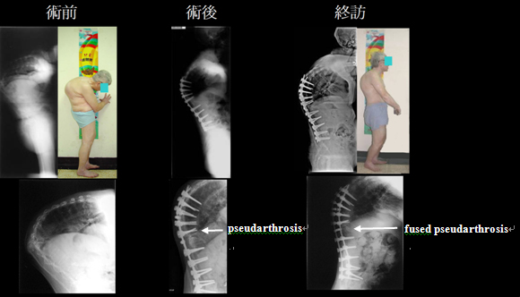 ¹ï©ó»øª½©Ê¯á´Õª¢°©§é§Î¦¨°²Ãö¸`(pseudoarthosis)¨ÖÄY«¾mI·î§Î¡A°ê»Ú¤W³q±`¥H«á¤è¤º©T©w¾¹ÁB¥¿(Instrumentation and correction)¡A¦A¥Ñ«e¤è¹ï°²Ãö¸`§@¤Á°£¤Î°©²¾±À³NªvÀø¡C¥»¤¤¤ß²v¥ýµo²{»øª½©Ê¯á´Õª¢¯f±w¶W±jªº°©¿Ä¦X(bone fusion)¯à¤O¡A¶È»Ý¥Ñ«á¤è©ó¦æÁB¥¿¤Î°í©Tªº¤º©T©wªvÀø¡A«e¤èªº°²Ãö¸`·|¦Û¦æ¿Ä¦X¡A§K°£¤F«e¤è¤j¤â³N¤Î¬ÛÃöªº¦MÀI¤Î¨Öµo¯g¡A²¤Æ¤â³N¡A¦w¥þ´£¤É¥B¤£´îÀø®Ä¡C ¤â³NÁB¥¿¹ê¨Ò¡G47·³¨k©Ê»øª½©Ê¯á´Õª¢¨Ö°©§é§Î¦¨°²Ãö¸`¤ÎÄY«¾mI·î§Î¡A¦æ³æ¿W«á¤èÁB¥¿¤â³N§Y¹F¦¨Ã©w²z·Qªº·î§ÎÁB¥¿¡A«e¤è°²Ãö¸`¤G¦~«á¦Û¦æ¿Ä¦X¡A§K°£¤F«e¤è¤j¤â³N¡A²¤Æ¤â³N¡A´£ª@¦w¥þ¡C